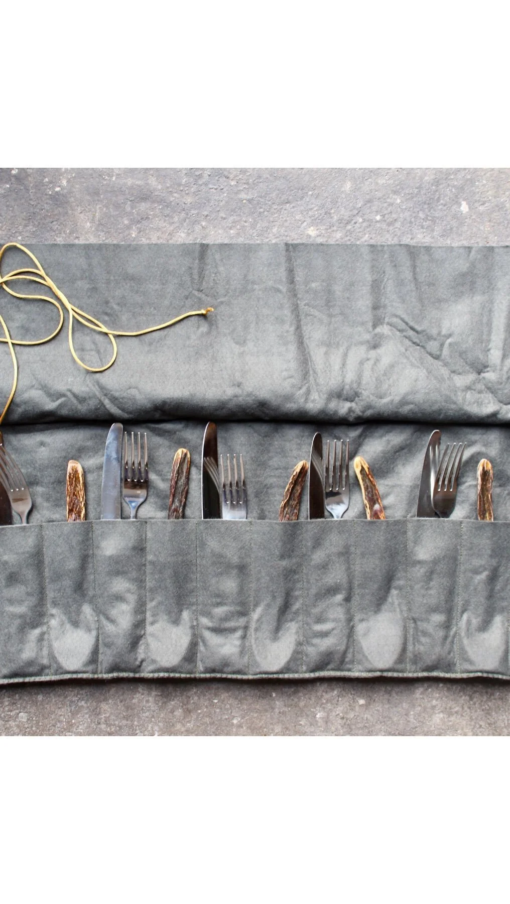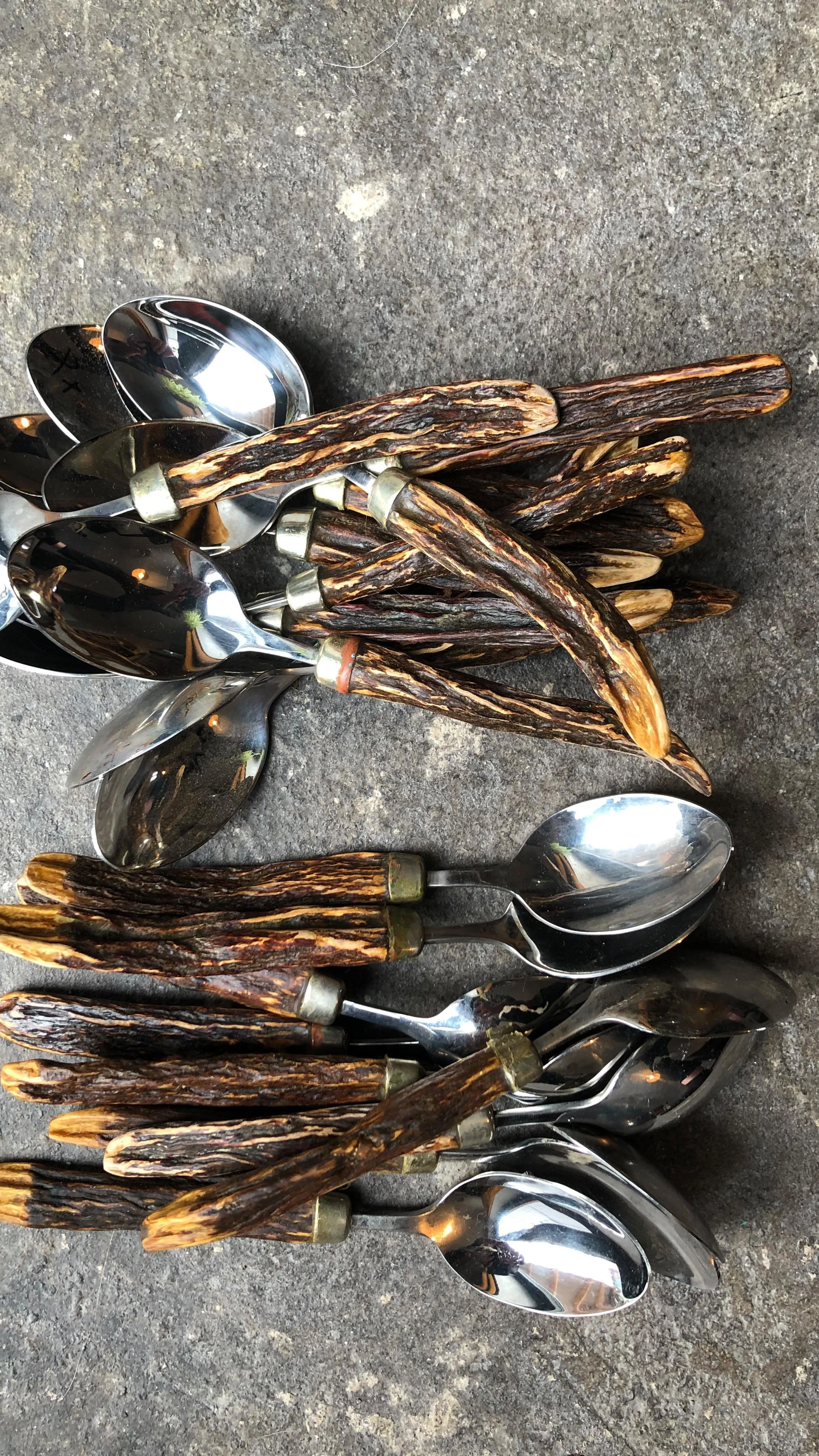 A range of vintage and high grade modern stainless steel cutlery with unique handles made from storm-cast Kelp stalks from the Skellig coast.